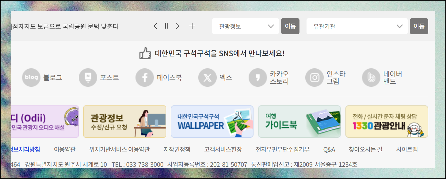 우리나라의 거의 모든 여행지에 대한 정보를 확인할 수 있는 서비스도 있습니다. 대한민국 구석구석 홈페이지 우측 상단의 '여행지도' 아이콘 모양의 메뉴를 선택하시면 더 자세한 정보를 얻을 수 있습니다.