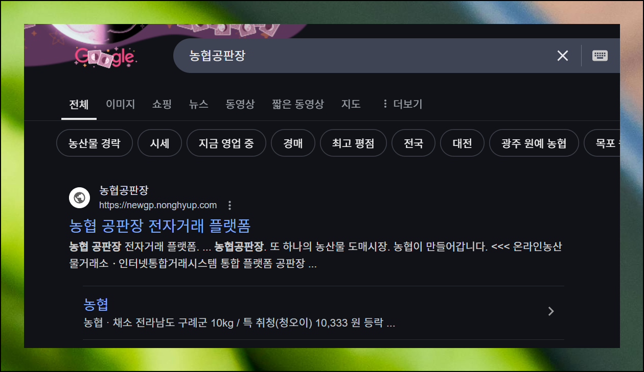 농협 공판장 플랫폼에 접속하면 다양한 기능이 있어요. 메인화면의 [농산물 가격 정보] 메뉴를 누르면 여러 가지 주요 작물의 최신 시세를 즉시 확인할 수 있습니다. 더 많은 품목 검색 또는 서비스를 이용하길 원하시면 아래에 위치한 하위 메뉴를 선택하면 돼요.