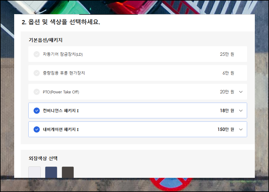정확한 비용 산출을 위해서는 세부모델과 옵션 선택이 중요합니다. 상용차 모델마다 이용 가능한 옵션이 달라요. 그렇기 때문에 먼저 본인에게 필요한 핵심 기능을 파악한 후, 그 기능을 제공하는 세부모델을 고르는 것이 좋습니다.
