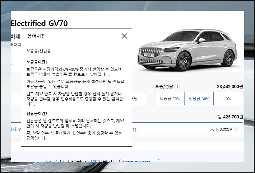 g80 시리즈의 경우 보증금이나 선납금이 없으면 월 지출이 높아질 수 있으니 꼭 참고하세요.
