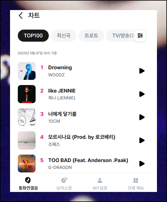 마음에 드는 곡 옆의 "듣기" 버튼으로 미리 청취해보세요. LG 컬러링 바꾸는법의 마지막 과정에서는 요금 정보도 동시에 확인 가능합니다.