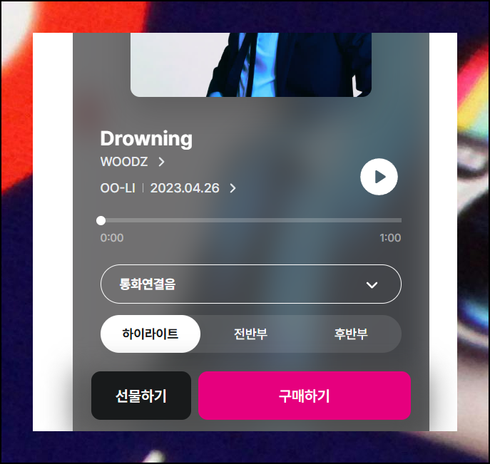 마음에 든다면 미리듣기 창의 "구매하기" 버튼을 눌러 바로 적용하면 돼요.