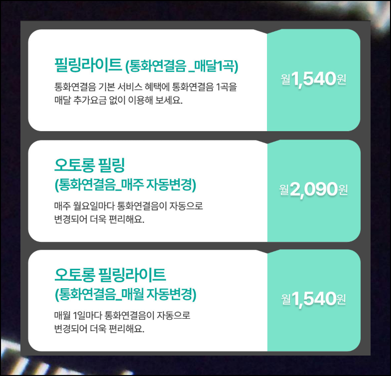 컬러링 음원 바꾸는법에 따라 가격이 달라짐을 알아주세요.