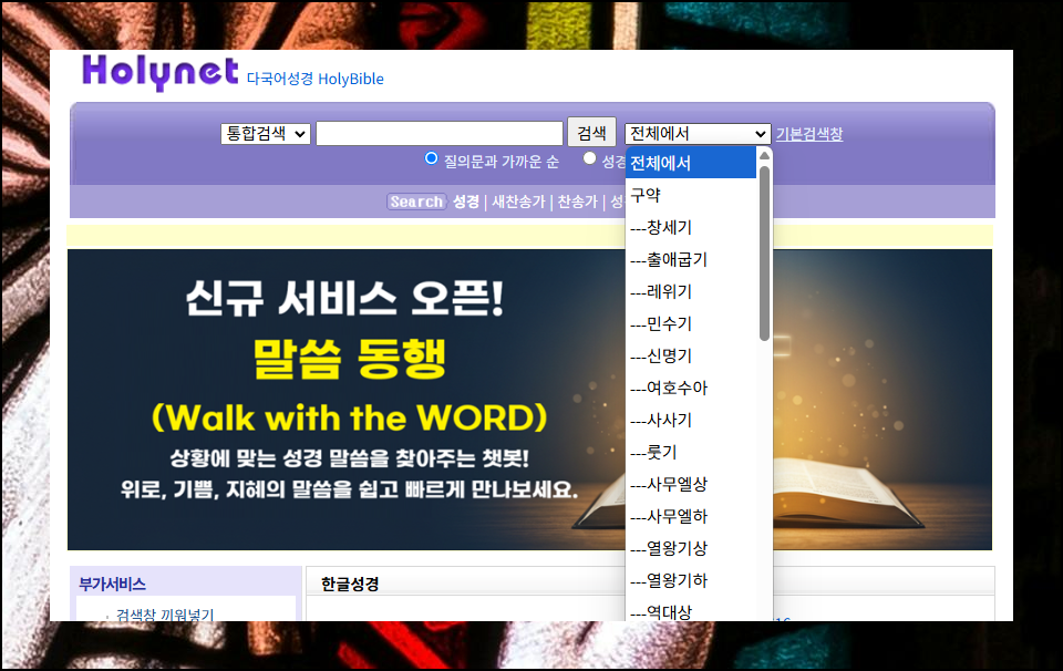 홀리넷은 회원가입 절차 없이 누구나 무료로 이용할 수 있는 성경 검색 사이트입니다.