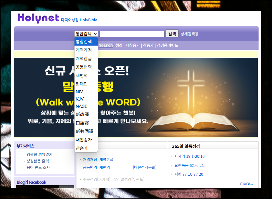 개역개정, 개역한글, 새번역, NIV 등 여러 가지 언어와 버전을 제공하고 있어요. 찬송가 가사에 포함된 내용도 검색을 통해 쉽게 찾기 가능합니다.