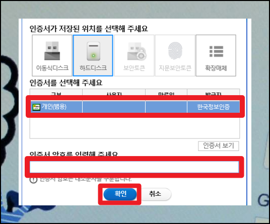 인증서를 선택하고 기억나는 비밀번호를 입력해보면 돼요. 떠오르는 숫자나 문자 조합을 모두 시도해보는 것이 유리합니다.