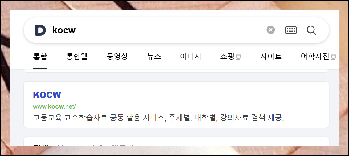 인터넷 검색창에 'KOCW'만 입력하면 손쉽게 찾을 수 있습니다. 학습 비용 걱정 없이 수준 높은 강의를 들을 수 있는 좋은 기회예요.