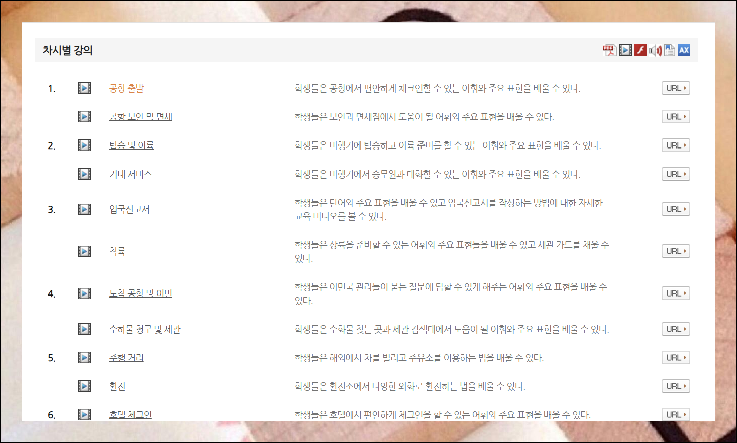 실제 대학 수업과 같이 교육 계획서도 확인할 수 있고, 페이지를 아래로 내리면 차시별 학습 목록도 볼 수 있어요. 관심 있는 특정 주제만 선택해서 들을 수도 있습니다.