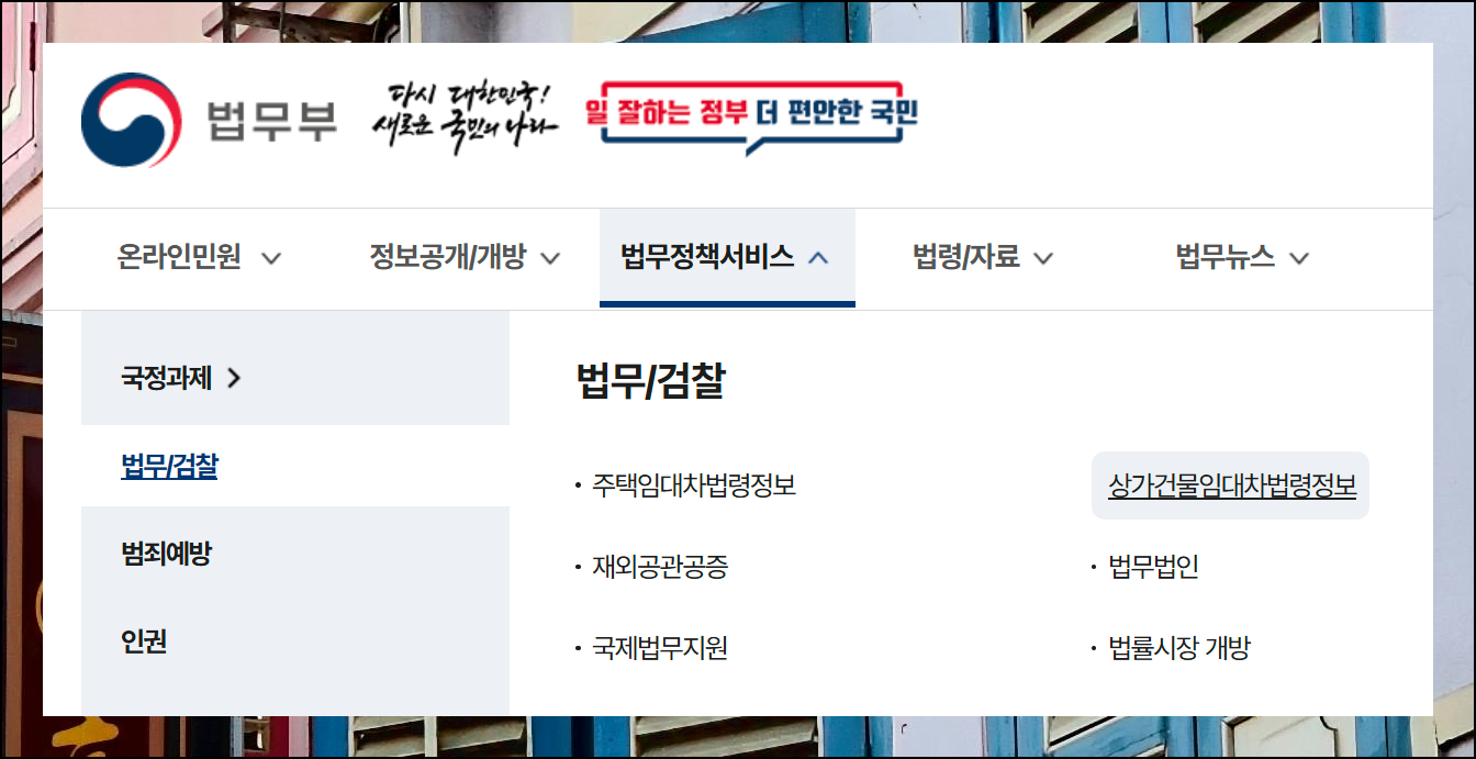 안전하게 검색을 통해 법무부 공식 홈페이지에 접속해 주세요. 여기서 몇 번의 클릭만으로 필요한 임대차 서류를 찾을 수 있습니다.
