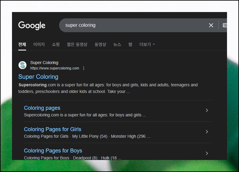 두 번째 추천 플랫폼 Super Coloring은 컬러링북 무료 다운로드는 물론이고, 온라인 상에서 직접 색칠하는 기능까지 제공해요. 앞선 곳보다 자료량이 훨씬 풍부합니다. 세부 카테고리도 엄청 다양해서 내 마음에 쏙 드는 컬러링북을 찾기 쉬워요.