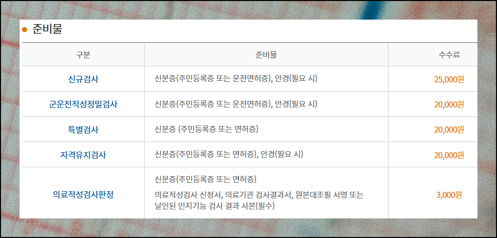 평가 유형에 따라 가져가야 할 물건이 조금씩 다를 수 있어요. 고령 운전자 자격유지검사를 진행할 때는 본인 확인을 위한 신분증과 평가 수수료, 평소 안경을 쓰신다면 안경도 반드시 챙기세요.