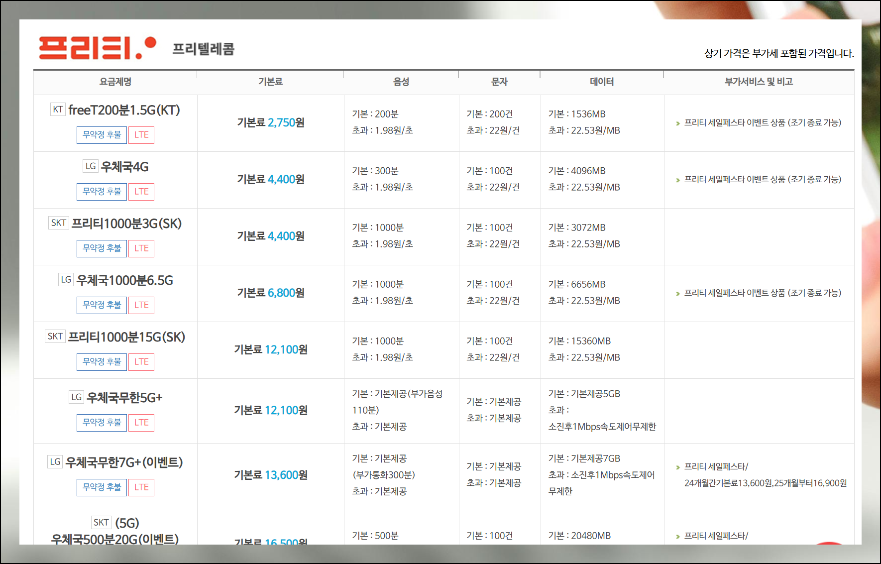(1) 알뜰 요금제 가격비교 사이트 안내