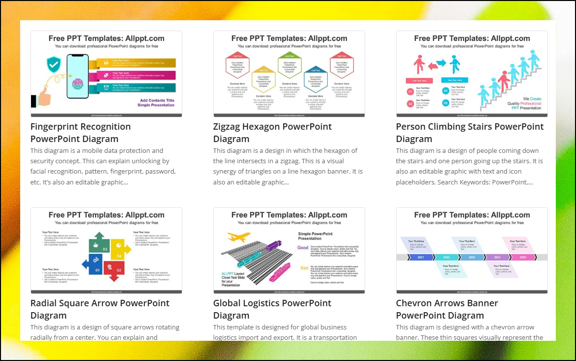ALLPPT는 프레젠테이션 제작에 필요한 template을 찾는 가장 효율적인 방법 중 하나예요. 이 플랫폼의 가장 큰 장점은 주제별로 체계적으로 정리된 카테고리 시스템입니다.