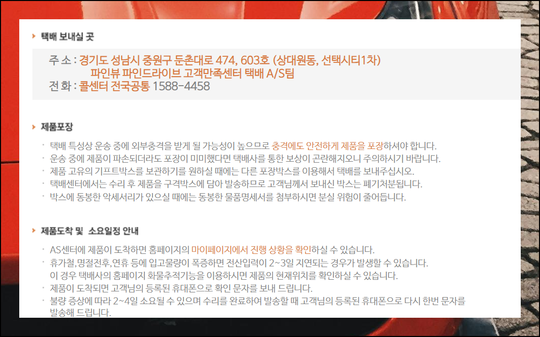 콜센터 연락처를 공유해드리니 문의 사항이 있다면 연락을 해보세요. 제품을 포장하거나 수리 일정에 대해 알고 싶을 때에는 다음과 같은 사항을 참고하시면 됩니다.