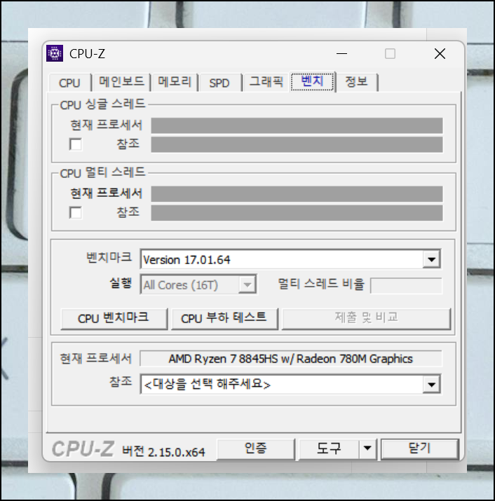 이번에 사용할 CPU-Z 한글판은 설치 과정 없이 바로 실행할 수 있어서 매우 편리해요. 소프트웨어를 열면 모든 메뉴와 항목들이 깔끔한 한글로 표시되어 누구나 쉽게 이해할 수 있습니다. CPU 메뉴에서는 프로세서의 정확한 이름과 개발 코드명을 한눈에 볼 수 있어요.