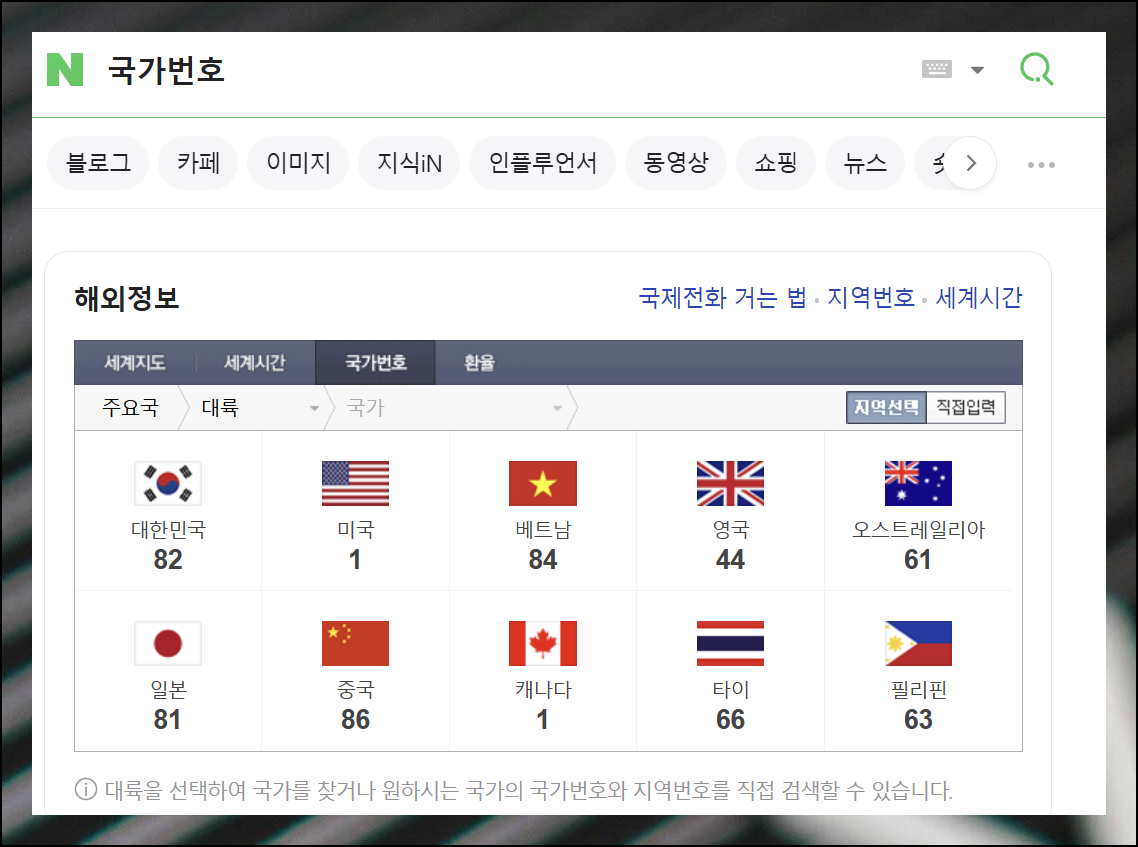 지역코드를 알아보는 가장 쉬운 방법은 네이버에서 "국가번호"를 검색하는 거예요. 검색 결과에는 대한민국, 미국, 베트남, 영국, 오스트레일리아 등 주요 국가들의 코드가 나타납니다. 여기서 미국(1번)을 클릭하면 더 자세한 정보를 확인할 수 있어요.