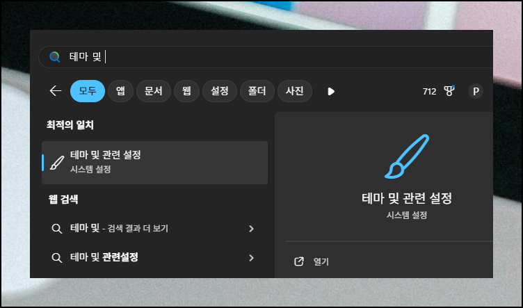 아이콘이 사라졌을 때 더욱 빠른 해결책이 있어요. 시작 버튼을 클릭하고 "테마 및 관련 설정"을 입력하면 바로 이동할 수 있어요. 이 방법을 사용하면 여러 단계를 거치지 않고도 원하는 설정창으로 직접 이동할 수 있습니다. 누구나 "바탕화면 아이콘이 사라졌어요" 문제를 겪을 수 있는데요.