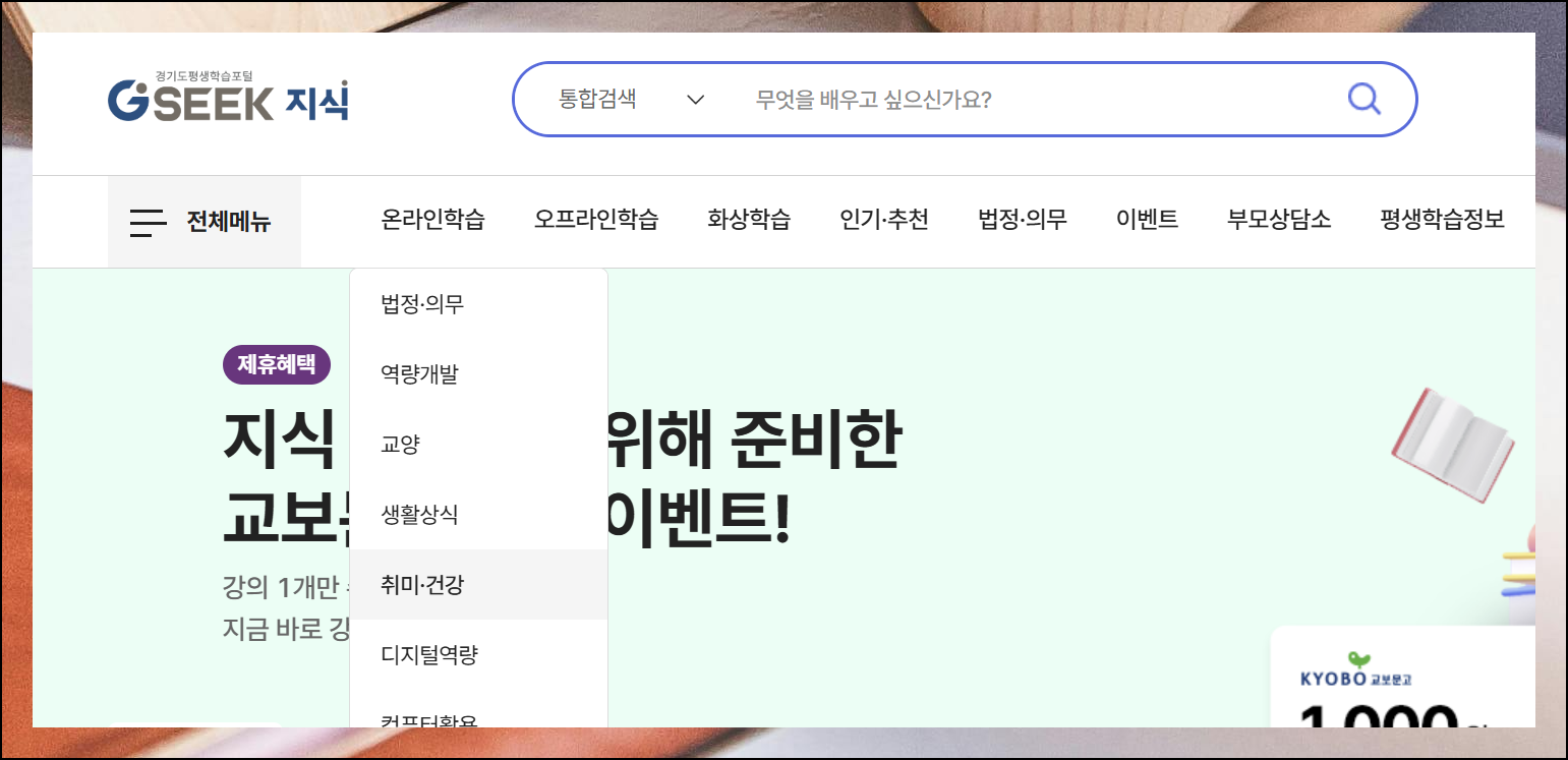 GSEEK 사이트에서 캘리그라피 강좌를 찾는 절차를 단계별로 안내해드릴게요. 우선 GSEEK 사이트에 회원가입을 완료하고 로그인을 진행하세요. 이후 메뉴에서 분야별 학습을 선택해 주세요. 여기서는 컴퓨터, 생활정보, 가정생활, 취업, 창업 등 다양한 강의를 무료로 만날 수 있어요.