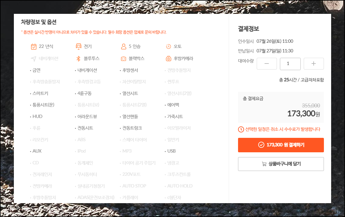 관심 있는 렌트카 상품을 클릭하면 자세한 정보를 담은 페이지로 이동해요. 대여 요금표와 조건, 꼭 알아야 할 주의사항들을 한눈에 볼 수 있습니다. 취소 규정을 특히 주의 깊게 살펴보세요.