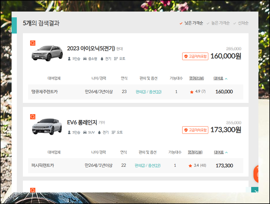요금표 비교가 끝나고 마음에 드는 옵션을 찾았다면 예약하기 버튼을 누르면 됩니다. 온라인 예약이 매장 방문보다 훨씬 저렴하니 이 방법을 꼭 활용하세요. 제주 렌트카 이용 시 조건에 맞는 차량을 선별하고 여러 업체의 가격을 비교한 다음 가장 만족스러운 선택을 하면 됩니다.