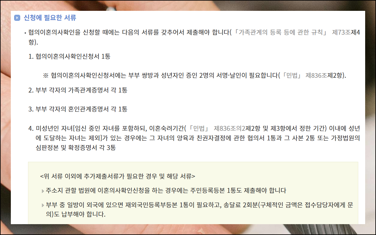 이혼서류 제출을 할때 함께 제출해야 하는 서류들은 주민센터나 시청에서 발급받을 수 있습니다. 요즘에는 집에서 직접 프린터로 출력하는 방법도 가능하죠. 아니면 무인발급기를 이용하는 것도 가능해요.