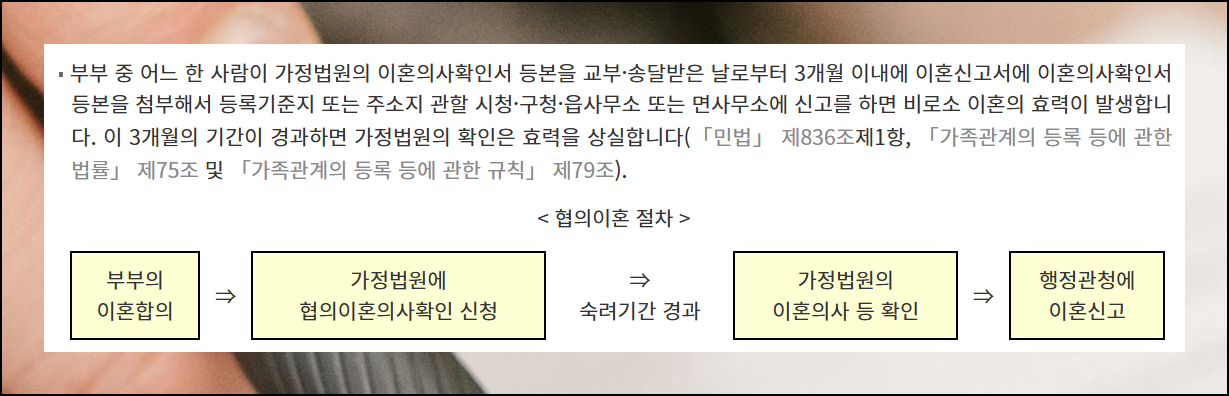 이혼서류를 제출한 이후에는 신중한 판단을 위한 숙려기간이 시작되는데요. 자녀가 없거나 성인 자녀만 있는 경우에는 1개월의 시간이 주어지고, 미성년 자녀가 있거나 임신 중인 상황이라면 3개월간 기다려야 합니다. 접수방법상 특별한 사정이 인정되는 경우에는 기간 단축이나 면제도 가능하니, 해당 조건에 부합한다면 사유서를 미리 준비해주세요.