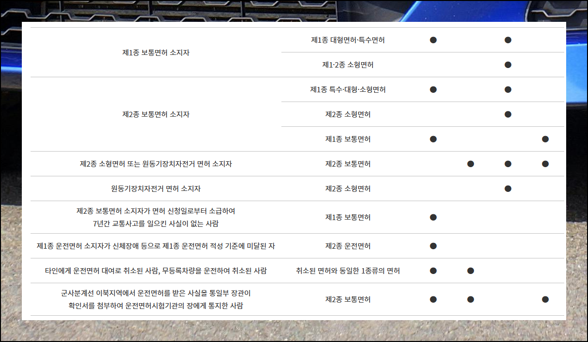 (1) 면허 종류별 기본 구분