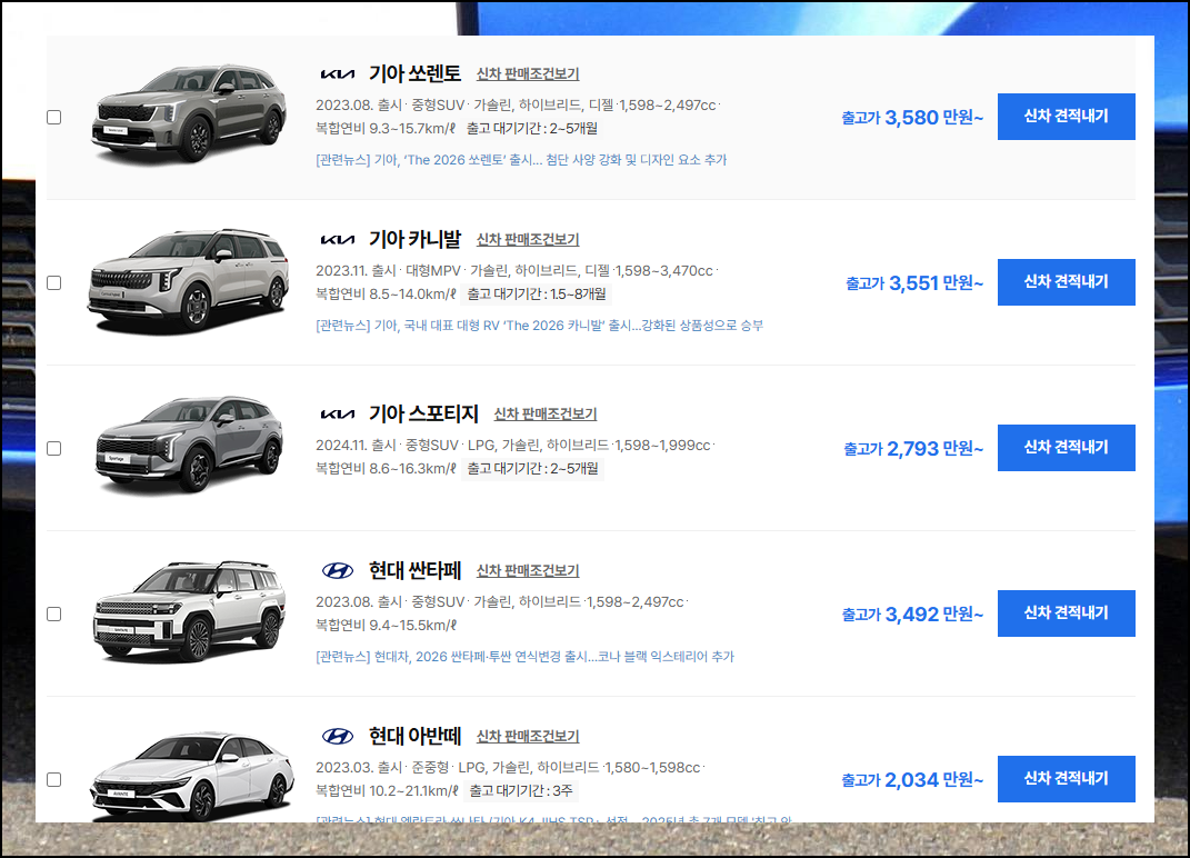 (7) 차량 모델 검색 사이트 활용