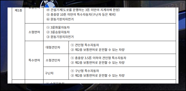 (3) 1종 소형과 특수면허 범위