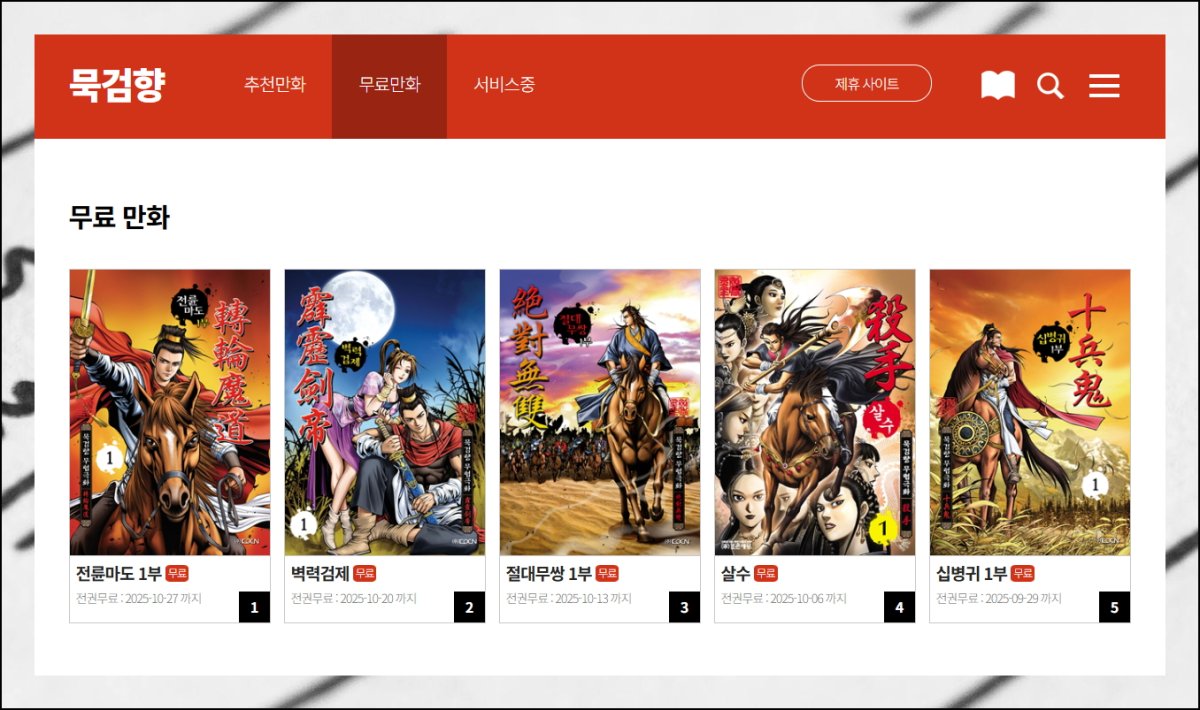 묵검향 홈페이지, 두 플랫폼으로 만나는 무료 만화