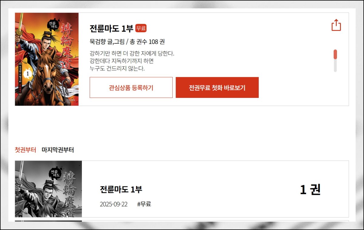 만화 애호가라면 무료 서비스를 제대로 활용하는 게 중요해요. 저는 평소에 두 곳의 홈페이지를 번갈아가며 이용하고 있습니다. 각 사이트마다 제공하는 콘텐츠 라인업이 주기적으로 교체되거든요. 새롭게 업데이트가 되면 이전 작품들은 내려가는 시스템이에요. 묵검향 작가의 다양한 작품들을 이런 방식으로 만나볼 수 있어서 좋습니다. 마음에 드는 것을 발견했다면 미루지 말고 즉시 감상해보세요.