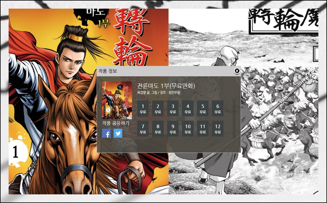 화면 구성이 두 페이지씩 동시에 볼 수 있게 만들어져 있어요. 자동 페이지 넘김 기능과 원하는 화수로 바로 이동할 수 있는 점프 옵션도 있습니다. 사이트에서 제공하는 이미지 해상도가 훌륭해서 대화면으로 감상하면 더욱 선명한 화질을 경험할 수 있어요.