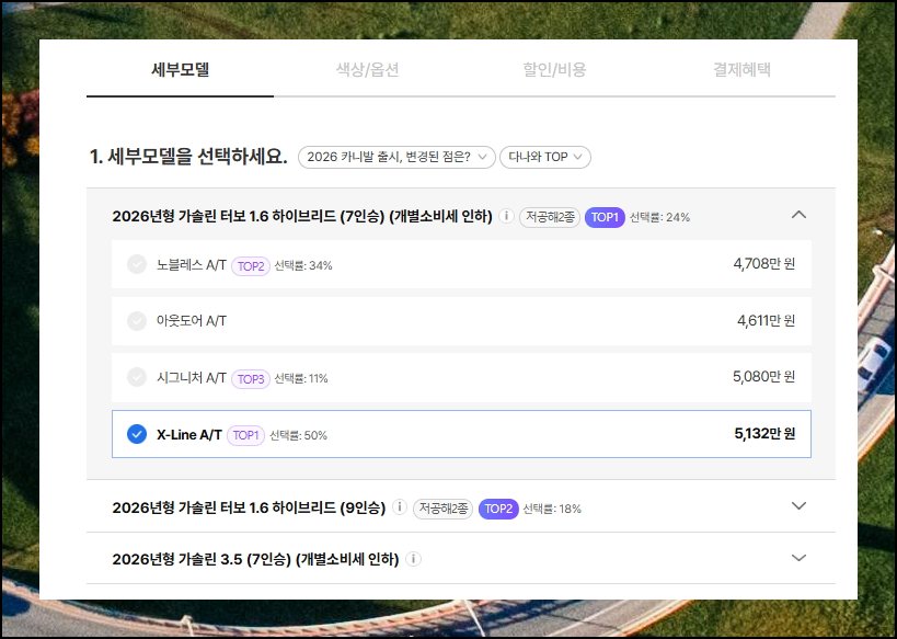 카니발 9인승 가격표를 미리 확인해두면 이런 고민을 훨씬 수월하게 해결할 수 있어요. 온라인 견적 시스템을 통해 기본형부터 고급 사양까지 한눈에 비교하고, 부대 비용까지 포함된 총액을 사전에 계산해볼 수 있습니다. 복잡해 보이지만 단계별로 따라가다 보면 생각보다 간단하게 내게 딱 맞는 차량을 찾을 수 있죠.