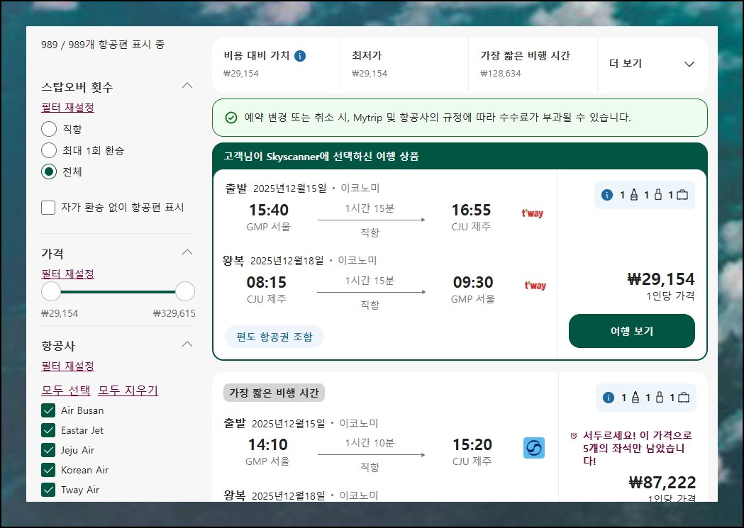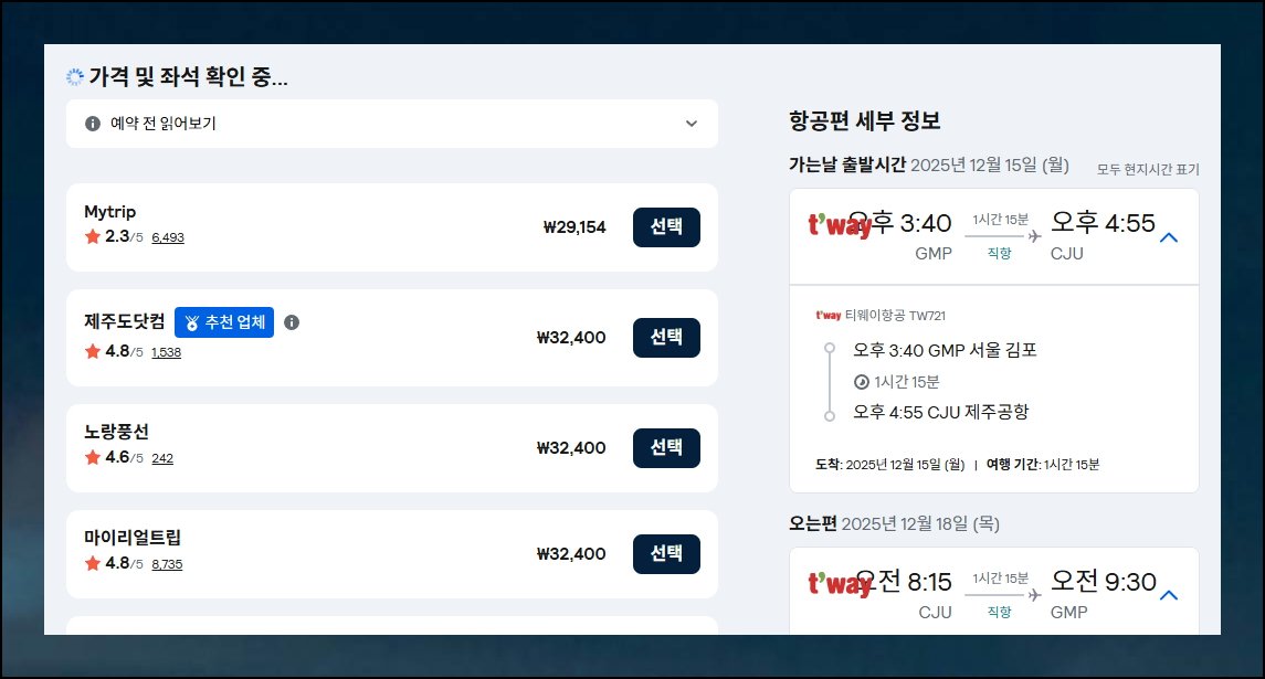 연말연시를 맞아 제주 여행을 계획하고 계신가요? 항공권 예매는 여행 준비의 첫 단추이지만 여러 사이트를 돌아다니며 비교하는 일은 생각보다 번거롭습니다. 하지만 스마트한 방법을 알고 있다면 시간도 아끼고 비용도 절약할 수 있어요.