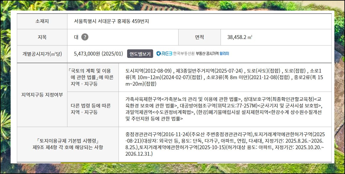 새로 열린 창에서 세부 내용을 살펴볼 수 있어요. 소재지 정보와 지목, 면적 같은 기본 데이터를 무료열람할 수 있습니다. 개별공시지가 정보도 함께 나타나요. 지역 지구등의 지정 여부와 관련된 사항도 볼 수 있어요.