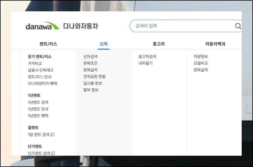 이 플랫폼은 장기 임대나 할부, 중고 물건 정보까지 두루 갖추고 있어요. 첫 화면에서 새 차 탐색 카테고리를 터치해 기초 사항부터 둘러보시면 됩니다.