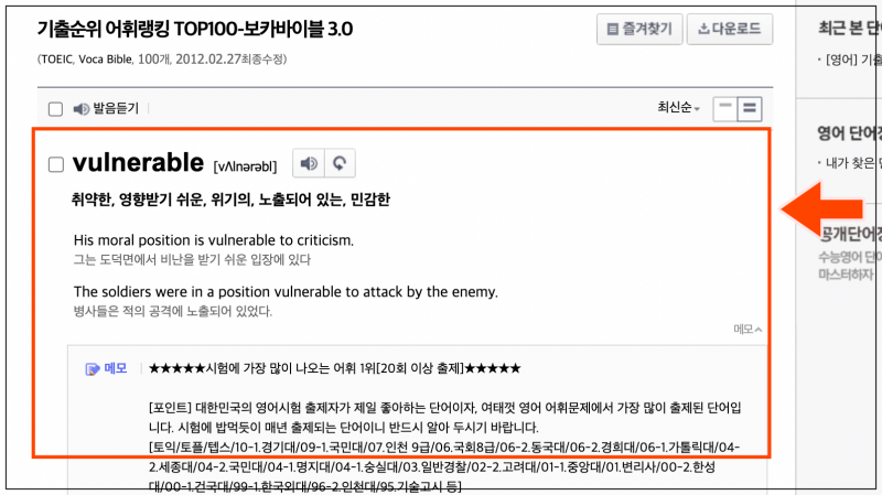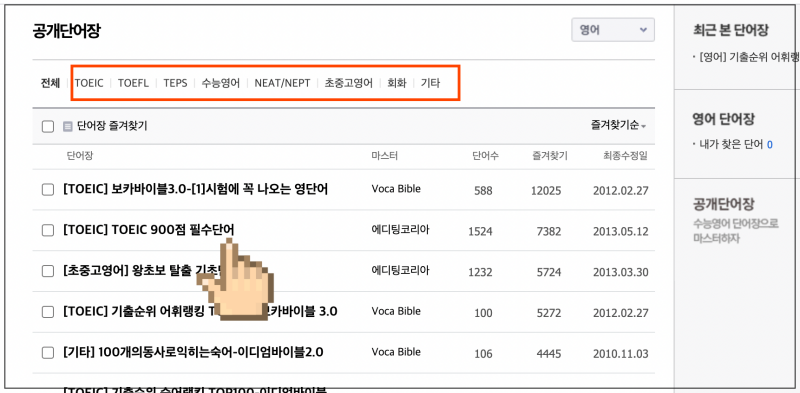 영어 단어를 암기할 때에는 목적이나 용도에 맞는 것을 선택하여 암기하는 것이 좋아요. 토익을 준비하는데, 수능영어에 나오는 것을 공부하면 학습 효율이 떨어지기 때문이에요. 이번 시간에는 1000개 이상의 영단어를 목적에 따라 구해보려고 하는데요. 하나씩 잘 따라해 보세요.