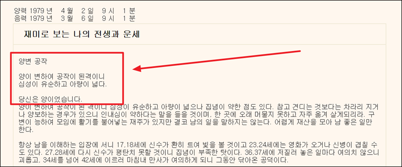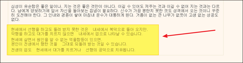 풀이 후반에는 이러한 기질을 가진 나의 삶이 더 나아질 수 있도록 조언이나 조심해야 할 내용이 포함되어 있어요. 마지막으로 전생, 현세, 내세의 관계에 대한 설명을 볼 수 있는데요. 선행하는 삶이 중요하다는 것을 알 수 있어요.