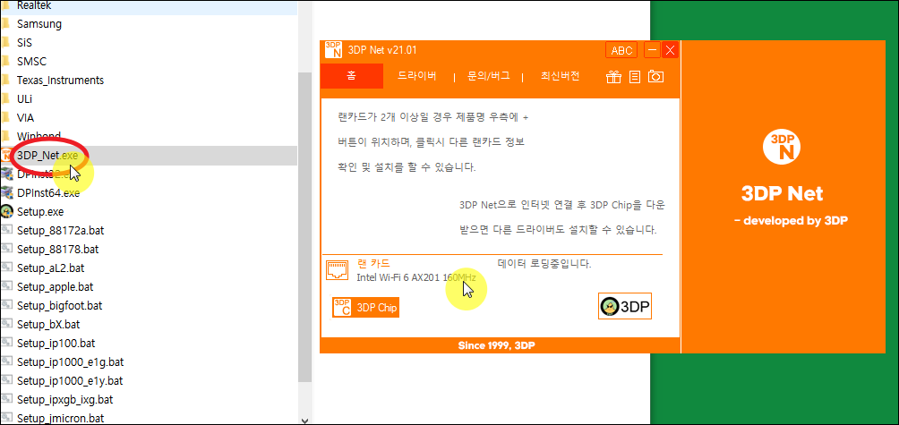 3dp net은 랜카드 통합 드라이버 프로그램인데요. 랜카드의 제조사를 알 필요 없이 이것 하나면 전용 드라이버를 설치할 수 있어서 좋아요.