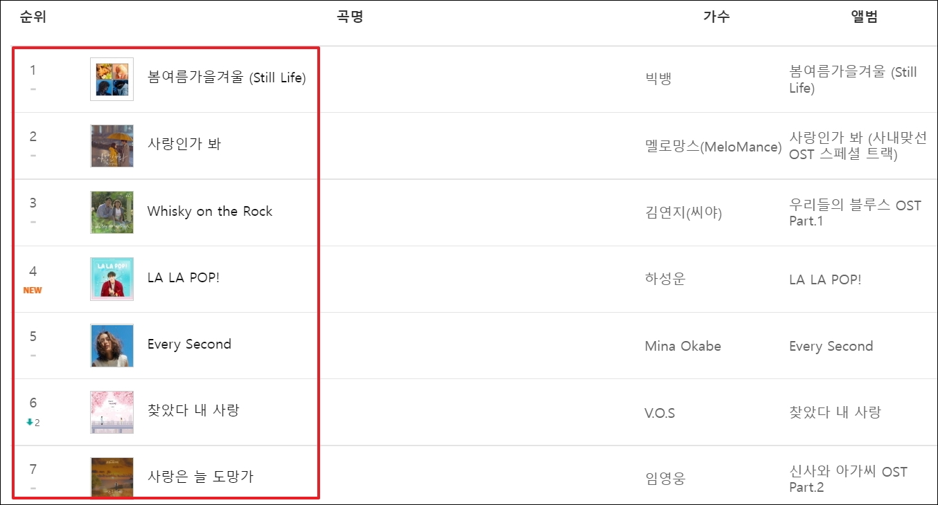▼금일 기준으로 제가 알아본 사이트에서 추천하는 벨소리 노래 음원은 다음과 같습니다. 빅뱅, 옐로망스, 김연지, 하성운, 임영웅 등의 가수가 부른 노래 음원을 가지고 만들어진 것들이죠. 여기에 집계된 순위는 많은 사람들이 이용하거나 선호도를 바탕으로 만들어졌기 때문에 추천 할만하다고 판단됩니다.
