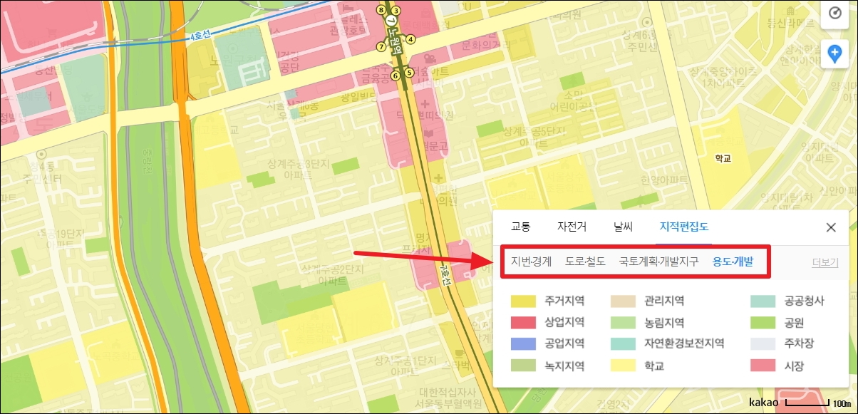 ▼해당 사이트에서는 지번과 경계, 도로와 철도, 국토계획 및 개발지구, 용도와 개발 정보를 파악할 수 있는 지적도 서비스를 제공하고 있습니다. 이를 통해 주거지역, 상업지역, 공업지역, 녹지지역, 관리지역, 농림지역 등을 지도에서 바로 확인이 가능합니다.